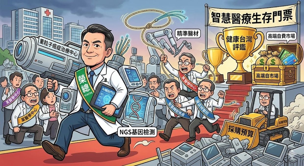 榮總大舉建置創新醫材的大動作,已引爆全台大型醫院「智慧轉型焦慮」,並預示未來五年,台灣各大醫療院所將掀起一波創新醫材採購潮。不單單是為了提升醫療效率,更是為了在「健康台灣」的評鑑體系與高端自費市場中,爭取立足點。